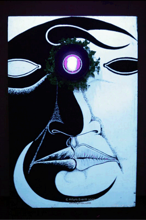 In other words, The UV Ensemble strives to demonstrate BlackLight art has as much depth as it has breadth. Our work is a perhaps-naïve and certainly-immature semiotic gesture, the crafting of narrative without semantics, syntax, or consistency. The Ancient Gallery embraces the constantly evolving meme-plex of information and awareness living through time as art and ritual.